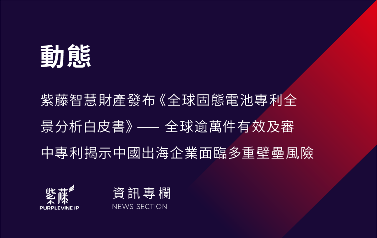紫藤智慧財產發布《全球固態電池專利全景分析白皮書》—— 全球逾萬件有效及審中專利揭示中國出海企業面臨多重壁壘風險